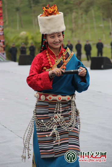 藏族姑娘白玛曲宗从那曲牧区到县城两个小时,再坐五个小时火车到拉萨,从拉萨坐飞机到海口,再乘车两个小时,21日凌晨两点才到琼中。她为观众演唱了《美丽的故乡》,高亢辽阔的嗓音赢得观众热烈的掌声。 中国文艺网 丁薇 摄