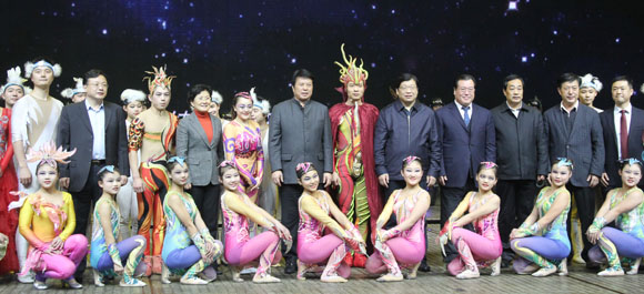 12月27日,第八届中国杂技金菊奖第三次剧目奖颁奖仪式在河南濮阳举行。图为与会领导和表演人员合影。中国文艺网 何瑞涓 摄