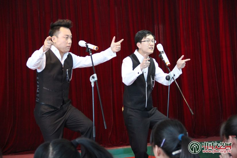 _在演出中,刘全和、刘全利表演的滑稽小品赢得学生们的欢笑声最多,在他们两次返场之后仍有同学高喊“再来一个!”中国文艺网 丁薇 摄