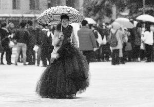 昨天,在马年初雪中,中央戏剧学院率先拉开了艺考大幕。晨报记者 李木易/摄