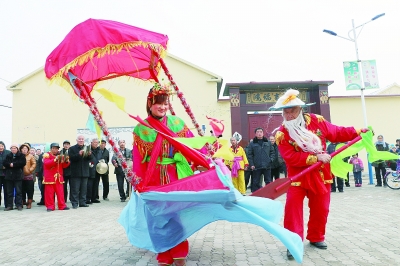 | 春节期间,山东省无棣县小泊头镇的秧歌队载歌载舞来到县城,为人们献上了一道道精美的传统文化大餐。 蒋惠庆 冯晓华 摄影