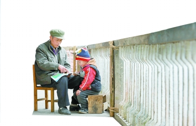 广西南宁市隆安县布泉乡中心学校附近一处出租屋,63岁的“陪读爷爷”黄光积在出租屋走廊陪孙子看书。 新华社记者 陆波岸摄