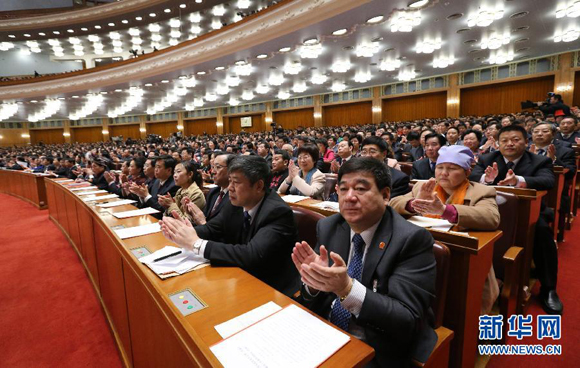 3月13日,第十二届全国人民代表大会第二次会议在北京人民大会堂举行闭幕会。这是代表在会上鼓掌。 新华社记者鞠鹏摄
