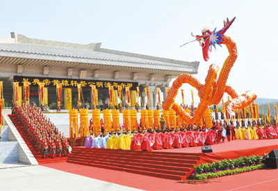 4月5日,清明公祭轩辕黄帝典礼在陕西省黄陵县桥山黄帝陵祭祀广场举行。新华社记者 丁海涛摄