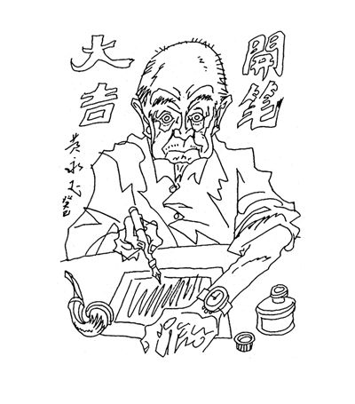 “不可先打别个一拳,再等别个打你一拳,像铁匠打铁,一个正锤,一个填锤。要凭自己主意一直快打下去。”教拳的瞎子师傅如是说。“师承”于此的黄永玉,这么多年凭自己主意打得尽兴,从流浪的岁月中大口吮吸,从“吾少也贱,故多能鄙事”中沉着运气,把木刻、版画、国画、漫画、油画、雕塑、文学、书法、设计十八般武艺耍得快意淋漓。七十岁“随心所欲”,八十岁“刀枪不入”,如今九十岁了,依然能“收拾起浑身大好河山”——九十画展上他的那些巨幅大画,富丽浓烈,生气逼人,真似“手上有鬼”,所向披靡。