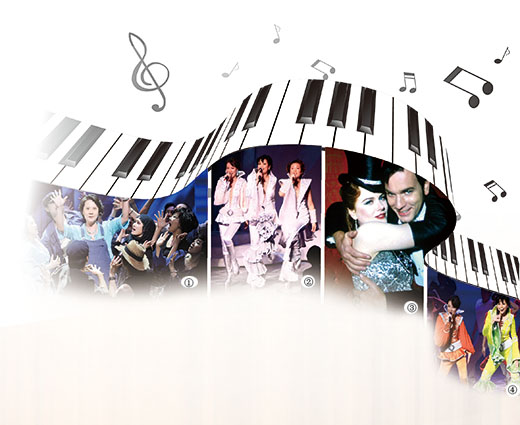 图①、②、④:音乐剧《妈妈咪呀!》剧照。图③:音乐剧《红磨坊》剧照。[资料图片]