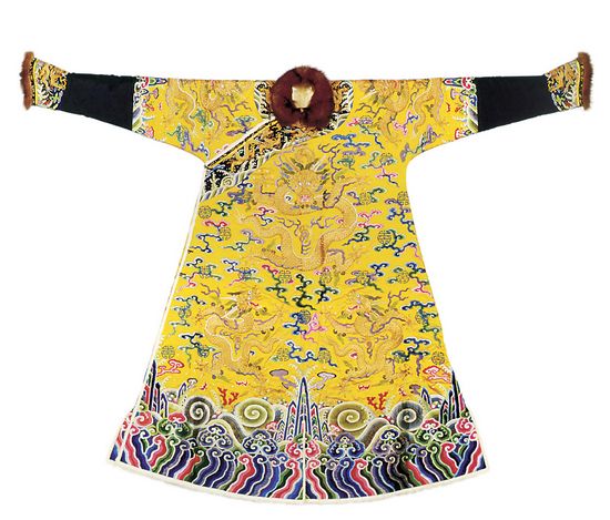 雍正 明黄色缎绣云龙银鼠皮龙袍