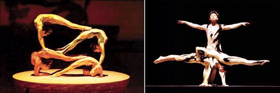 又如传统柔术对人的身体柔性度的不可能性,但在最后通过表演的展开而达到了可能性,从而使观众获得了超越常态性经验的审美享受。(见图1)