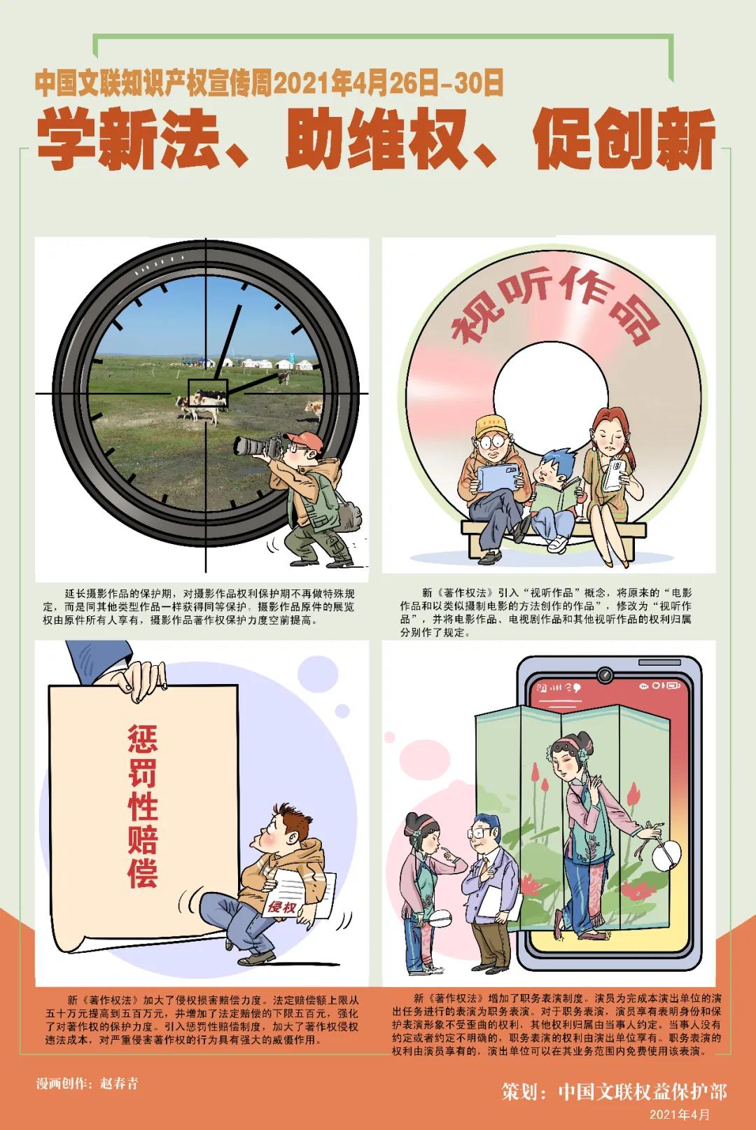 权益保护部围绕“学新法、助维权、促创新”主题策划制作了宣传海报漫画,旨在深入学习贯彻习近平法治思想和习近平总书记关于加强知识产权保护工作的重要讲话精神,认真学习宣传贯彻新《著作权法》,加强知识产权普法宣传,提高业界知识产权保护意识。
