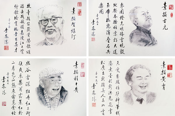 这不是电影世界里虚构的变幻莫测的古老画像展示,而是由kaiyun电子 主办,中国美协承办,中国美术馆、高等教育出版社协办的“素描大师——李岚清素描作品展”的闪亮呈现。李叔同、萧友梅、郭沫若、田汉、吴昌硕、齐白石、梅兰芳、沙孟海等120余位20世纪中国艺术家素描一一展开,每幅素描人物画像旁,是创作者专门为他们撰写或编集的诗句,朱红印章嵌于其上。这是近现代文艺大师素描的庞大群像,是中西合璧、创意别开的艺术组合。
