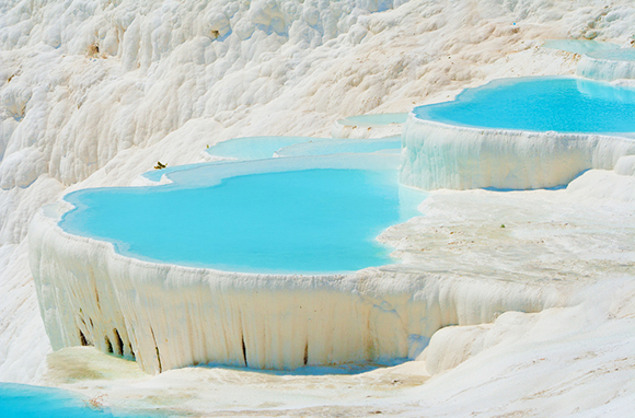 自远古时期,棉花堡就有这样的情景:蓝绿色的水流进白如棉花的阶梯形的石灰华(一种多孔碳酸钙)水池,碳酸钙的沉淀物使得这些温水池熠熠生辉。