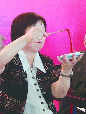 新制的鲁庵印泥,用签子用力挑起来很长都不断,十分柔韧 丁文梅 摄