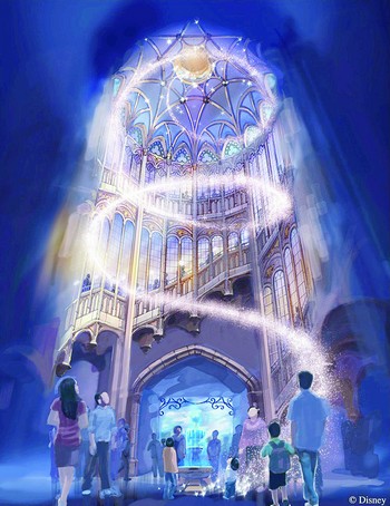 5月24日,施工团队将城堡的第一根永久混凝土桩打入地基,这标志着上海迪士尼乐园奇幻童话城堡的施工正式启动,奇幻童话城堡将是上海迪士尼乐园内的标志性中心景点。图为上海迪士尼奇幻童话城堡内部效果图。