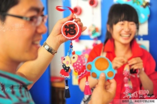 5月24日,中国石化中原油田职工在爱心义卖会上认购手工艺品。中国石化中原油田采油四厂中央企业郭明义爱心团队烛光志愿者利用业余时间制作工艺品在爱心义卖会上进行义卖,捐助黄河滩区的贫困儿童。