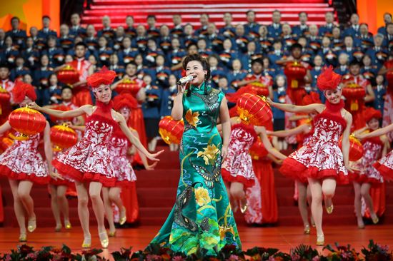 接着,杨洪基、李谷一、李光羲、胡松华、克里木等老歌唱家分别给观众带来了《我和我的祖国》《一路芬芳》《祝酒歌》《吉祥酒歌》《掀起你的盖头来》等经典歌曲。巨大的舞台背景屏幕上,舒卷变化着祖国繁荣、民族大家庭和谐共处的壮丽画面。