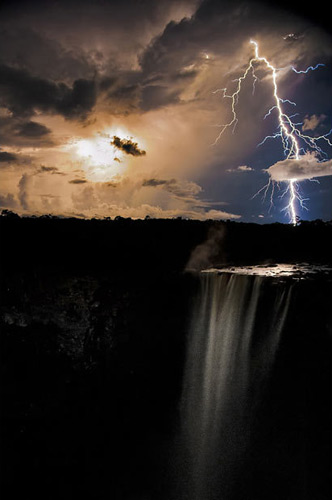 2011年度英国特许水务与环境管理学会环境摄影大赛近日揭晓评选结果。大赛旨在通过专业及业余摄影师的精彩佳作,以唤起人们对环境保护问题的关注。自然世界类冠军:闪电照亮凯丘瀑布。夜间,一道巨大的闪电照亮了凯丘瀑布。凯丘瀑布位于圭亚那凯丘国家公园中,是世界上单极落差和流量最大的瀑布。