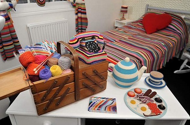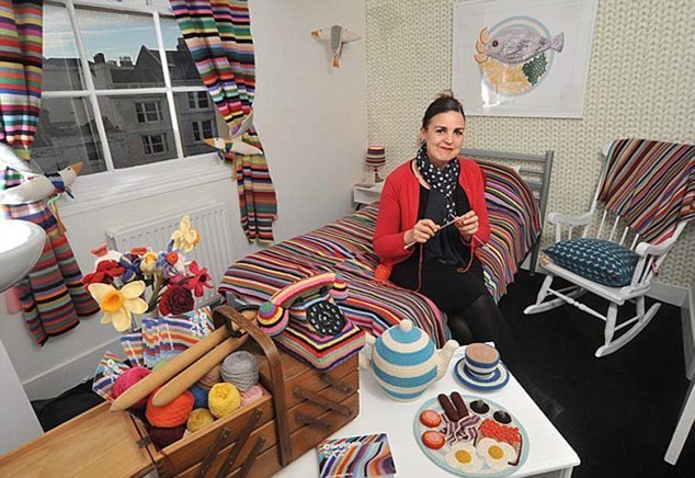 在英国布莱顿市,40岁的设计师凯特·詹金斯耗时一个月,在当地一间酒店内用5公斤的毛线精心打造出了这间颇有童话色彩的小屋。