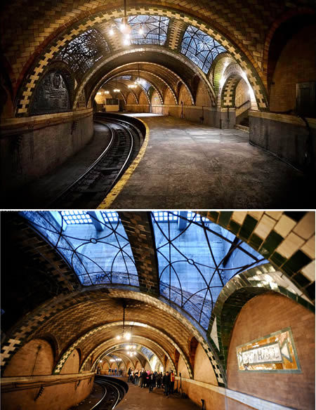 纽约市政厅地铁站(美国):美国纽约市政厅地铁站设计理念是建成一座美丽而实用的地铁站。纽约市政厅地铁站从1945年投入使用来,一直是纽约市最吸引人的地铁站。