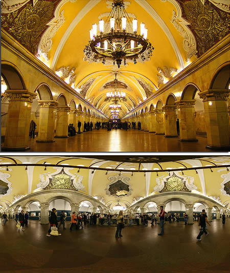 莫斯科共青团地铁站(俄罗斯):俄罗斯莫斯科共青团地铁站也成为了莫斯科的标志,部分由于其处于莫斯科最繁忙的交通枢纽:共青团广场,俄罗斯莫斯科共青团地铁站在莫斯科地铁5号线以及整个地铁系统中都是最出名的。这个地铁站是到莫斯科和俄罗斯其它地区的入口,它的设计主题是爱国主义和激发民族的荣誉感。这个地铁站在1952年1月30开放。