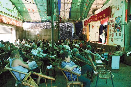 平时,我常会去成都雕塑公园看川剧(现在已经搬往皇经社区)。这家民间川剧班子每天都在上演着传统川剧剧目,一年365天,连大年三十也不休息。因为川剧对大众来说是艺术,对戏迷而言是娱乐,而对于他们则是生计。对于这些川剧演员来说,演出是他们生存的第一需要。这家民间川剧团还有一个名字,叫百家班剧团。演员大多是原来各县市川剧团的演员,因为后来川剧团不景气,纷纷倒闭,而这些人自小唱戏,没有别的生存本领,在本身就是川剧演员出身的剧团老板组织下,大家聚集在一起,以唱戏为生,艰难度日。
