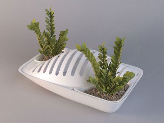 现在环保商品越来越多的推出市场,很多很好的创意产品,给我们生活带来了很大的方便,这里是来自于米兰设计工作室DesignLibero的设计作品,“Fluidity” 的设计,让你可以利用清洗碗盘子所滴下来的水去滋润你的植物,从而完成一个水的再次利用的循环过程。
