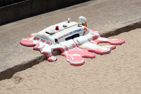 眼瞅着炎炎夏日慢慢逼近,整个世界又陷入融化状态。这座雕塑就百分百的反应出这么一个现状,澳大利亚设计师Orest Keywan 推出的这款雕塑赢得了30,000美刀,买一辈子冰激凌也够用啦,绝对不怕冰激凌融化啦。
