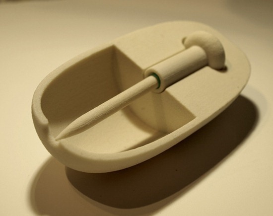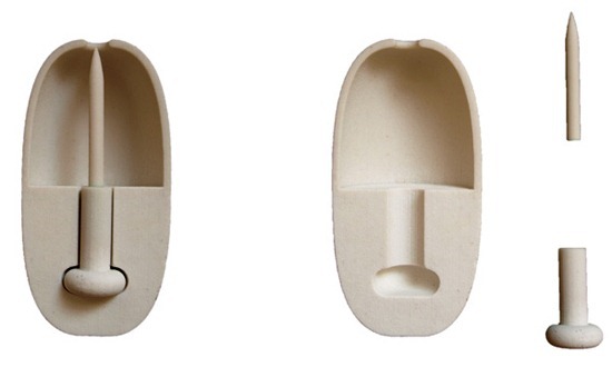 把钉子灌注进胶囊里面,当收到外部压力的时候里面的钉子才会露出来,就好比给钉子加了一个安全锁。这个红点设计奖的获奖创意是为了创造一个安全的使用环境。设计师:Toshi Fukaya