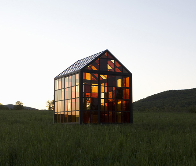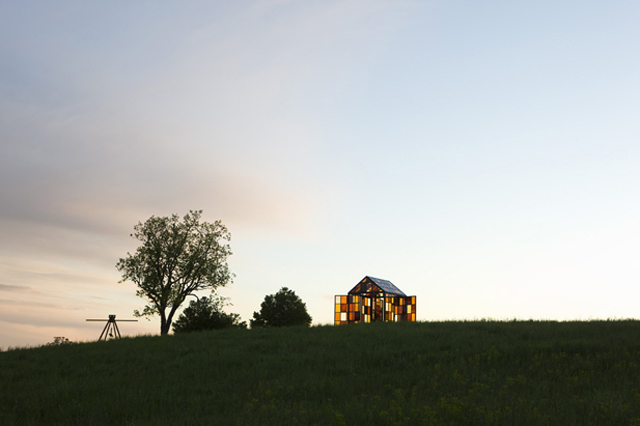 这所名叫Solarium的彩色玻璃房便出自light&landscape,它孤独的坐落在一个光秃秃的山丘顶上,通过自然光对有色玻璃屋的照射,原本只有绿色和一片空寂的山丘上多了几分让人充满希望的色彩,这色彩不是艺术家们给予的,更不是材料起的作用,它的希望来自伟大的自然界。
