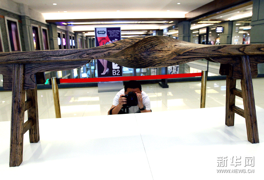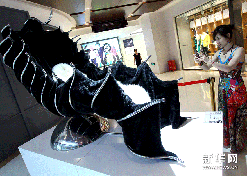 (2)7月3日,一名参观者在拍摄造型独特的椅子。