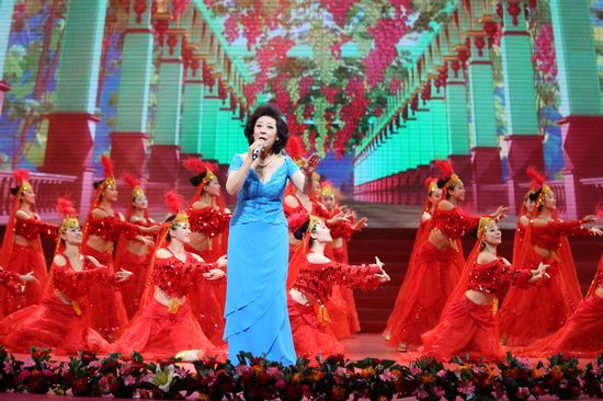 接着,杨洪基、李谷一、李光羲、胡松华、克里木等老歌唱家分别给观众带来了《我和我的祖国》《一路芬芳》《祝酒歌》《吉祥酒歌》《掀起你的盖头来》等经典歌曲。巨大的舞台背景屏幕上,舒卷变化着祖国繁荣、民族大家庭和谐共处的壮丽画面。