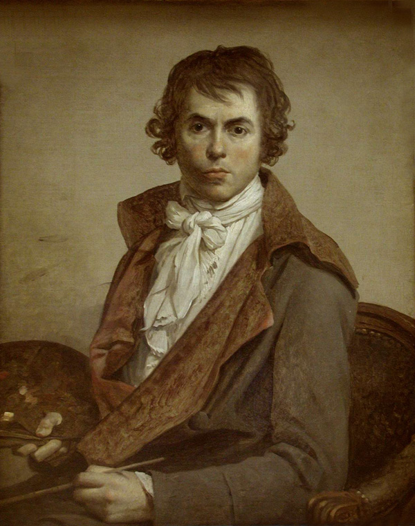雅克·路易·达维特Jacques Louis David (1748-1825) 法国大革命时期的杰出画家,新古典主义的代表人物。出身于巴黎一个中产阶级家庭,1758年 父亲去逝,由其叔父和建筑师德麦戎抚养。他最初的绘画老师是他的亲戚,著名的罗可可画家布歇。之后于1766年和皇家绘画雕刻学院历史画家维恩学画。从皇家美术院毕业后获罗马大奖,得以赴意大利游学,深受意大利文艺复兴美术影响。回到法国后,他接受了狄德罗的思想,反对封建王朝的腐朽统治。1794年7月,拿破仑发动政变,因参加了雅各宾党的达维特,被罗列了17条罪状而被捕入狱,险遭杀身之祸。1799年,成为拿破仑的首席宫廷画师。同时期教出一批优秀的画家,如:·安格尔、柯罗、席拉尔等。1825年,客死异乡,享年77岁。主要作品:《马拉之死》《巴利斯和海伦的爱》《被维纳斯解除武器的马尔斯》《荷拉斯兄第的宣誓》《马拉之死》《描绘美女康贝士贝的阿贝勒士》《拿破仑加冕式》《萨宾女人》《苏格拉底之死》。