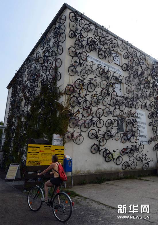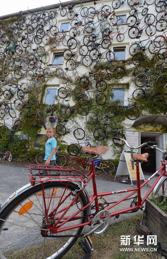 德国东部勃兰登堡州的小城旧兰茨贝格,有一家远近闻名的自行车店,这家店的外墙用上百辆各式自行车进行装饰,形成了独具特色的“自行车墙”。