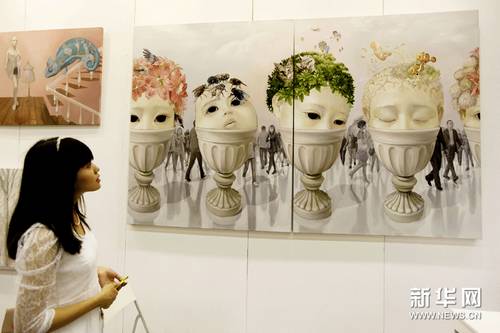 第十五届北京国际艺术博览会于8月16日至20日在中国国际贸易中心举行,来自16个国家和地区的90多家画廊及艺术机构为观众呈现了5000余件艺术作品。据介绍,北京国际艺术博览会牵手台北国际艺术博览会,此次首次推出“海峡两岸艺术作品推介展”,专题展示台湾艺术家们的精品佳作,成为本届博览会的一大亮点。新华网图片 符馨屯 摄