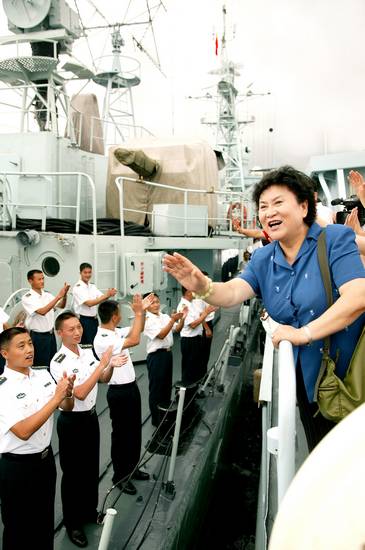 2007年8月,著名曲艺表演艺术家刘兰芳赴南海舰队某部演出。摄影:牛群