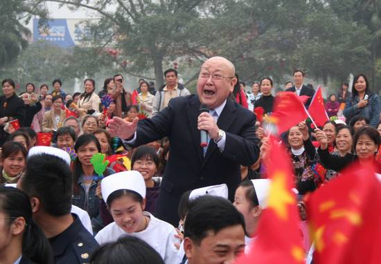 2010年1月,著名京剧表演艺术家尚长荣走进观众中演唱《自己的队伍来到面前》。摄影:高扬