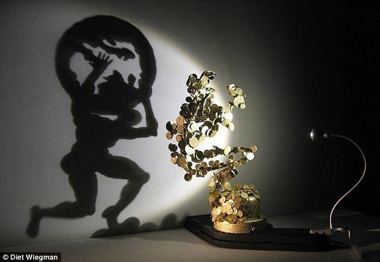 据英国《每日邮报》3月26日报道,迪特部分作品的灵感来自于名家大作,如断臂维纳斯和大卫等。迪特的作品不仅在大体上与原作相似,就连细节也都丝毫不差。除此之外,一些平凡的日常用品也能在他的创意下呈现出新的象征符号——通过光影,项链形成了美元符号,废弃的铁桶则形成了“毒”的符号,就连残羹冷炙都能构成一幅美妙的图画。 抽象艺术爱好者称,虽然这些雕塑可能不被视为传统意义上的杰作,但是它们的独特美并不存在于雕塑本身,而是蕴藏在它们的影子中,光与影的完美结合造就了这样令人惊异的艺术。