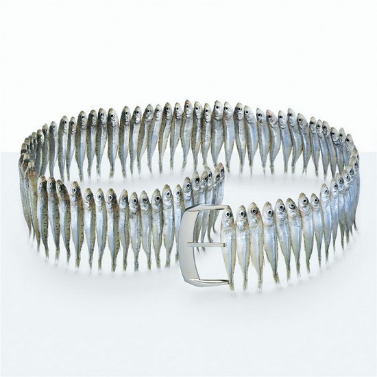 Fulvio Bonavia :『拍摄食物的秘诀就是动作要快,因为在强光下食材几分钟内就会坏掉,鱼,这是难度较高的作品之一,因为无法从单一角度拍摄新鲜的鱼,所以我决定拍三张不同的照片,再后期组合成一张,我把鱼排成三排,把这些鱼放在透明板上,每种物体的拍摄手法各异,在有些照片中食物的设计感成了主角,有些则凸显时尚艺术风格,只是借由食物展现不同的表现手法。』