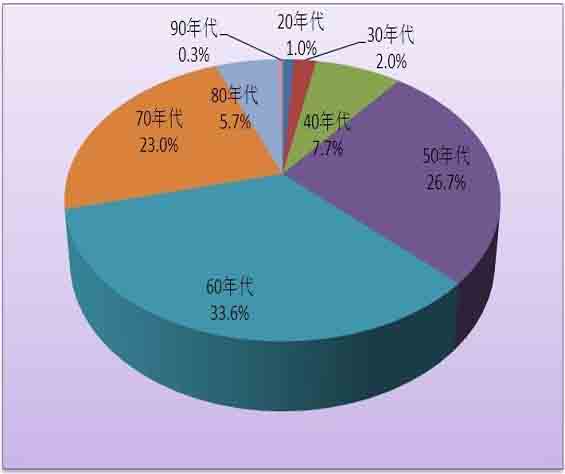在“网络意见领袖”中,40-60岁年龄段的中年人居多,出生于50年代至70年代的人数居多,合计为250人,占样本总人数的83%强。