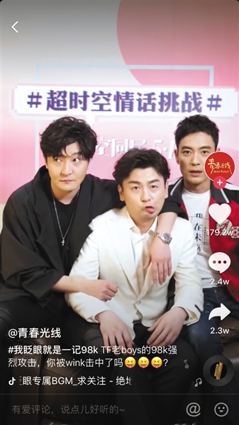 电影中本身李光洁就有客串,发布会的时候,片方又请到了郭京飞,让雷佳音、李光洁、郭京飞三位好友合体,又设计了很多互动环节,包括互相吐槽,给对方选道具,一起说土味情话等。因为艺人本身就自带传播属性,效果还是很好的。虽然该片在抖音上179.3万的最高点赞视频不是关于土味情话的,但是“超时空情话挑战”的话题最后在抖音一个平台就有八亿多的播放量。《超时空同居》的土味情话在抖音火了之后,后来还有很多电影继续做这个梗,但效果还是没有超过前者。