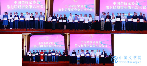 图为表彰中国杂协2019年度工作成绩突出的团体会员单位和杂技团体代表。