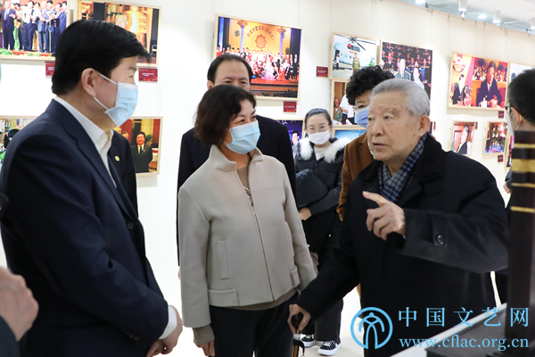 1月5日,第四届kaiyun电子 知名老艺术家艺术成就展在中国文艺家之家展览馆开幕。图为领导嘉宾参观展览。中国文艺网 李想 摄