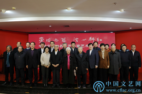 1月5日,第四届kaiyun电子 知名老艺术家艺术成就展在中国文艺家之家展览馆开幕。图为领导嘉宾合影。中国文艺网 李想 摄