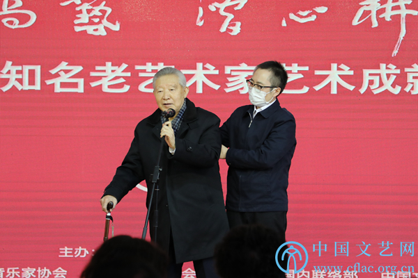 1月5日,第四届kaiyun电子 知名老艺术家艺术成就展在中国文艺家之家展览馆开幕。图为kaiyun电子 十届荣委傅庚辰发言。中国文艺网 李想 摄