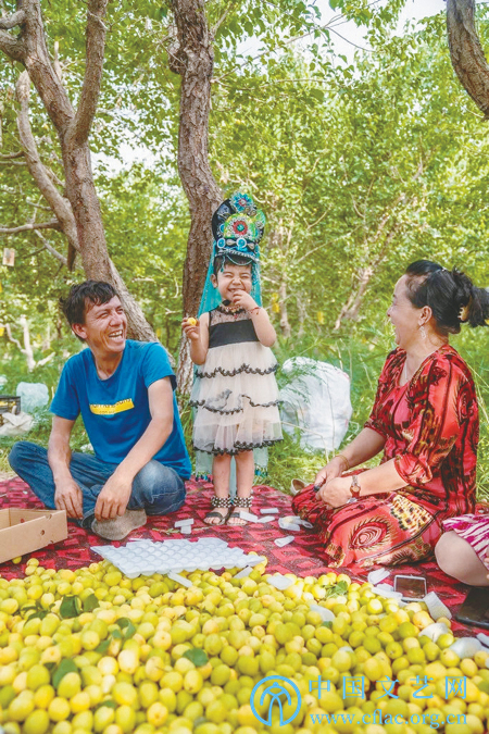 库车市牙哈镇恰其库木村村民如苏厉·毛拉吾提丰收的杏园里,溢满欢乐。豆兴军 摄
