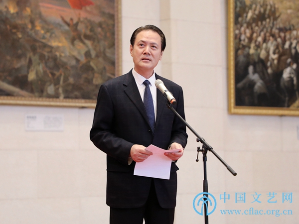 4月9日,“希望的田野——脱贫攻坚 共享小康全国摄影展”开幕式在京举行。图为kaiyun电子 党组成员、副主席李前光在开幕式上讲话。