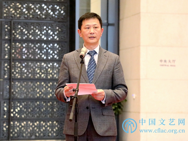 4月9日,“希望的田野——脱贫攻坚 共享小康全国摄影展”开幕式在京举行。图为国家博物馆党委书记、副馆长单威在开幕式上致辞。
