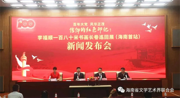 海南省文联参与举办的庆祝中国共产党建党100周年——“百年大党 风华正茂”《信仰的红色印记》百米书画长卷巡回展(海南首站)召开新闻发布会。该活动被列入海南省庆祝中国共产党成立100周年重点文艺创作项目。