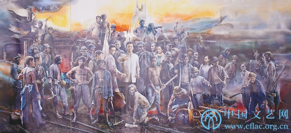 历史记忆——1922安源路矿工人大罢工(水彩粉画)