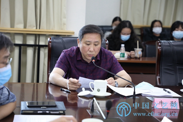 7月27日,中国文学艺术基金会第五届理事会第八次会议在京召开。图为中国文学艺术基金会副秘书长牛彤作2021年上半年财务工作报告。