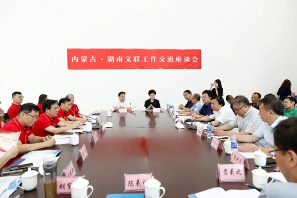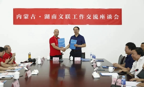 中国书协副主席、湖南省文联主席、省书协主席鄢福初,内蒙古文联党组书记、主席冀晓青等领导出席两地文联合作交流座谈会
